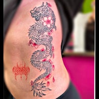 My early background started in childcare and Private kindergarten education. I enjoyed creating a learning environment through art and creative expression, which led me to tattooing. I grew up as a “pin cushion kid” I loved the art form of body modifications, especially piercings. I completed a 2 year apprenticeship for body piercing and quickly picked up different piercing techniques including free hand piercing. Being in a tattoo shop every day, I decided I wanted to pick up a machine and see what I could do! That turned into my husband Chris, and good friend/artist Tay teaching me how to tattoo and pushing me even further into my career. These two were my biggest inspiration as an artist while learning and still to this day!